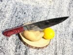 Introducing the Artistic 13.38″ Gyuto Chef Knife, a masterpiece of culinary craftsmanship designed to enhance your kitchen experience. With its 8.66″ blade forged from premium 440C stainless steel, this knife offers unparalleled sharpness and durability, ensuring precise cuts every time. The beautifully crafted wood handle provides a comfortable grip, allowing for effortless maneuverability, while the elegant leather sheath adds a touch of sophistication and protection for safe storage. Made in Pakistan, this Gyuto knife is perfect for both professional chefs and home cooks who value artistry and functionality in their kitchen tools.