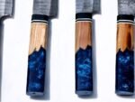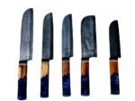 Unleash your culinary creativity with the Artistic 5-Piece Knife Set, a masterpiece of design and functionality. Each knife in this stunning collection, made in Pakistan, boasts a blade forged from premium Damascus steel, ensuring exceptional sharpness and durability for all your slicing and dicing needs. The elegant resin wood handles provide a comfortable grip, allowing chefs and home cooks alike to maintain precision and control during food preparation. Encased in a luxurious leather sheath, this knife set not only enhances your kitchen’s aesthetic but also offers practical storage and protection, making it an ideal gift for culinary enthusiasts and professionals.