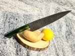 Unleash your culinary potential with the Center-balanced 12.99″ Sujihiki Damascus-steel Chef Knife, a masterpiece of precision and elegance. Originating from Pakistan, this knife boasts a stunning 8.26″ Damascus-steel blade, ideal for slicing through delicate cuts of meat and fish with unrivaled ease. The wooden handle, ergonomically designed for comfort, ensures a secure grip, while the center-balanced weight distribution enhances your control during intricate tasks. Safely store and transport your prized tool in the accompanying leather sheath, perfect for chefs who demand both style and functionality in the kitchen.