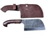 Elegant 14.56″ Deba Carbon-steel Chef Knife w/ Wood Handle & Leather Sheath