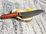 Refine your slicing game using the Full-tang 13.38″ Gyuto Damascus-steel Chef Knife w/ Resin Handle & Leather Sheath, featuring an 8.66″ blade for precision, making it a timeless addition to any kitchen.