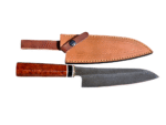 Unlock the art of culinary precision with the Full-tang 13.38″ Gyuto Damascus-steel Chef Knife, a masterpiece that seamlessly combines elegance and functionality. The 8.66″ Damascus-steel blade, crafted in the heart of Pakistan, delivers unmatched sharpness and durability, making it the perfect companion for both professional chefs and home cooking enthusiasts. The ergonomically designed resin handle provides a comfortable grip, ensuring ease of use during prolonged cutting tasks, while the exquisite leather sheath offers protection and style. Weighing just 0.256kg, this Gyuto knife is not only a testament to superior craftsmanship but also an essential tool for achieving perfect slices, dices, and chops with confidence.