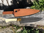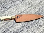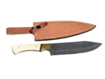 Experience unparalleled precision and elegance in your culinary endeavors with the Heavy-duty 12.99″ Bunka Damascus-steel Cleaver Knife, hailing from the skilled artisans of Pakistan. This exceptional cleaver knife boasts a striking 7.87″ Bunka blade, meticulously forged from premium Damascus steel, ensuring unmatched durability and razor-sharp performance for both professional chefs and home cooks alike. The exquisite camel-bone handle offers a comfortable grip and a touch of sophistication, while the included leather sheath provides secure storage and portability. Ideal for tackling the toughest chopping tasks and delicate slicing with ease, this heavy-duty cleaver is your ultimate kitchen companion, blending functionality with timeless beauty.