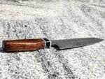 Introducing the exquisite Lightweight 13.38″ Petty Damascus-steel Chef Knife, a must-have for culinary enthusiasts seeking precision and elegance. Boasting an 8.66″ Petty blade forged from premium Damascus-steel, this knife effortlessly combines sharpness with durability, making it ideal for slicing, dicing, and intricate culinary tasks. The finely crafted wooden handle provides a comfortable grip, ensuring seamless maneuverability without straining your hand. Accompanied by a luxurious leather sheath, this Pakistani-made chef’s knife not only guarantees safety but also adds a touch of sophistication to your kitchen arsenal. Weighing just 0.184kg, it’s perfect for both professional chefs and home cooks who prioritize efficiency and style.