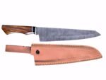 Premium 14.56″ Kiritsuke Damascus-steel Chef Knife w/ Wood Handle & Leather Sheath