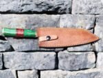 Experience precision and elegance in your culinary endeavors with the Professional 13.38″ Kiritsuke 440C Stainless-steel Chef Knife. Boasting an impressive 8.66″ blade crafted from premium 440C stainless steel, this chef knife ensures unmatched sharpness and durability, making it perfect for intricate vegetable cuts or slicing through meat with ease. The ergonomic wooden handle offers a comfortable grip, reducing hand fatigue during lengthy food prep, while the included leather sheath provides safe storage and adds a touch of sophistication. Proudly originating from Pakistan, this professional-grade knife is an essential addition to any chef’s kitchen, blending functionality with timeless style.