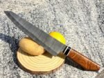 Introducing the Rustic 14.96″ Bunka Damascus-steel Chef Knife, a masterpiece that combines traditional craftsmanship with modern elegance. This versatile kitchen tool features a 9.84″ Bunka blade, expertly forged from premium Damascus steel, ensuring exceptional sharpness and durability for all your culinary needs. The wood handle offers a comfortable and secure grip, making it ideal for precise slicing, dicing, and chopping tasks. Complete with a stylish leather sheath, this chef’s knife, originating from Pakistan, is perfect for both professional chefs and home cooks who appreciate quality and style in their kitchen arsenal.