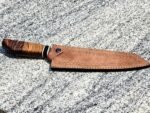 Rustic 14.96″ Bunka Damascus-steel Chef Knife w/ Wood Handle & Leather Sheath