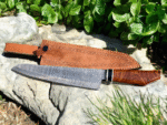 Lead every meal with the Rustic 14.96″ Bunka Damascus-steel Chef Knife featuring a 9.84″ blade, wood handle, and leather sheath—the perfect companion for serious cooking.