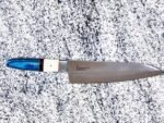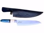 Sleek 13.77″ Santoku 440C Stainless-steel Chef Knife w/ Resin Wood Handle & Leather Sheath
